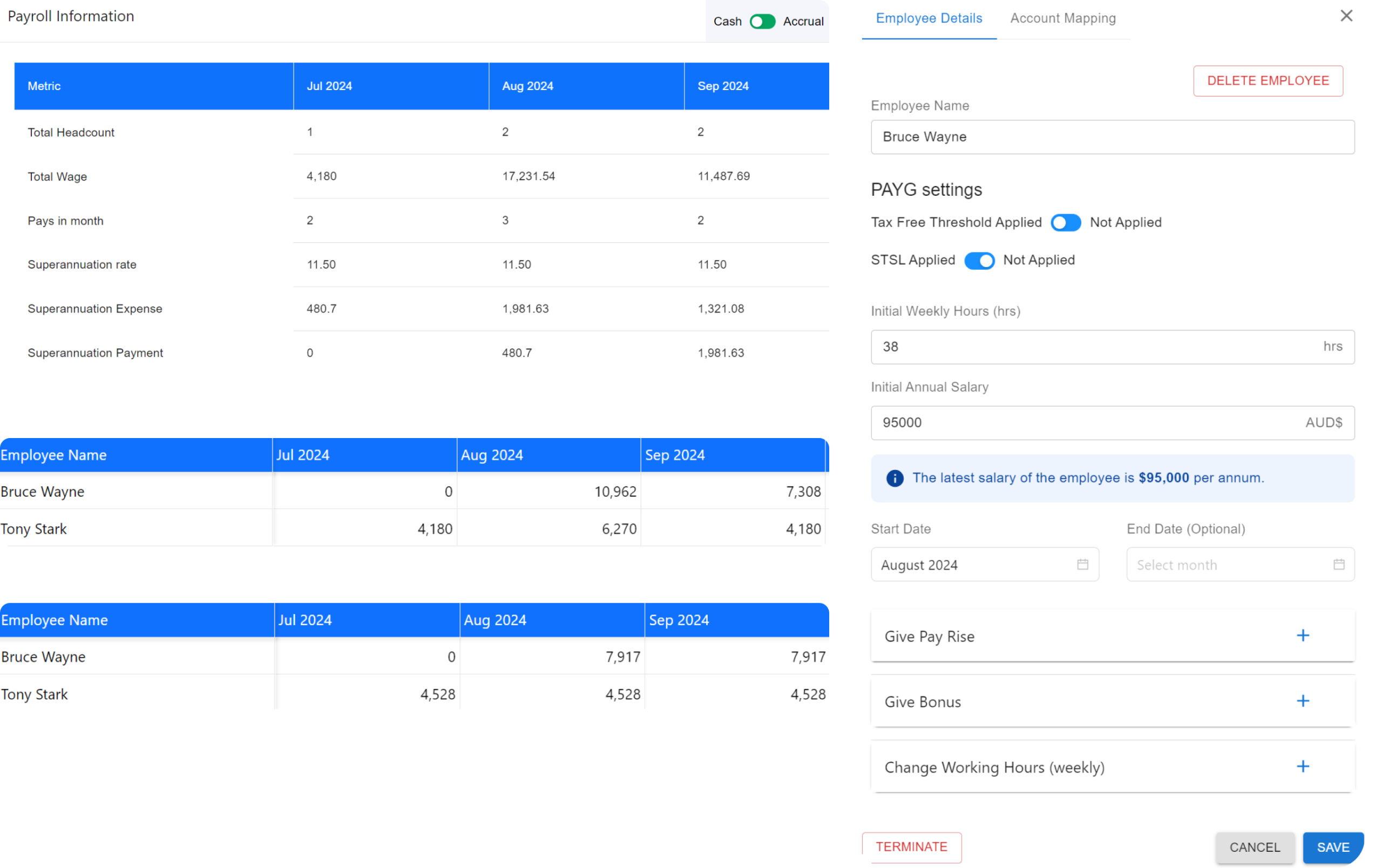 Existing tools don't accurately deal with payroll information like the cash timing of BAS, IAS and superannuation. You also need to put in an estimate of employee PAYG which constantly changes when employees come and go.Formulr has a built in PAYG calculation which mirrors the ATO calculation as well as setting options depending on whether you have quarterly or monthly super (including paying the June payment early), tax agent extension v client lodgment and specific cash timing for weekly and fortnightly payroll compared to monthly.