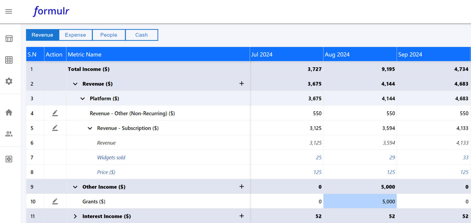Prefer to build out a complex driver based forecast?Create complex calculations using simple, easy to review formulas that are consistent across all account lines.Edit the cash timing of each account line to allow for different payment scenarios while still keeping the correct accrual reports.